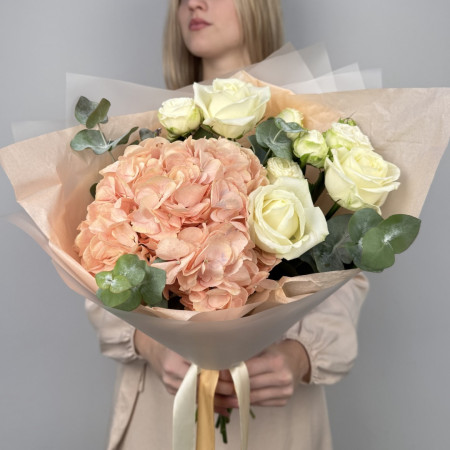 Букет с пионовидной розой и статицей